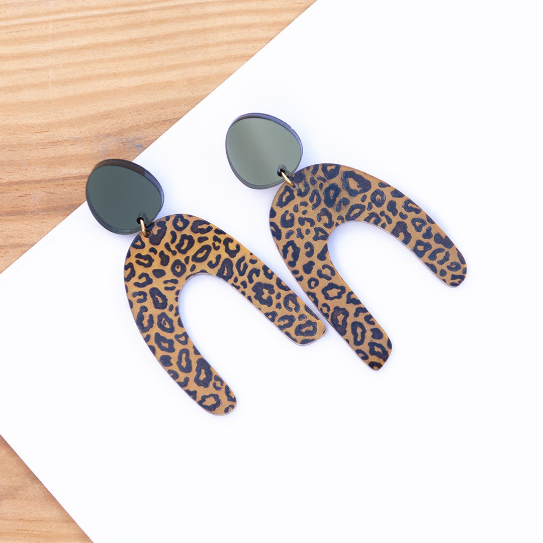 Haz una declaración salvaje con los Pendientes Animal Print Maxi U 🐾. Su diseño curvo tipo herradura no solo es original, sino también impactante, perfecto para quienes no temen destacar. Hechos de metacrilato con estampado animal print pintado a mano y con base superior en acabado espejo, estos pendientes combinan fuerza, diseño y estilo.