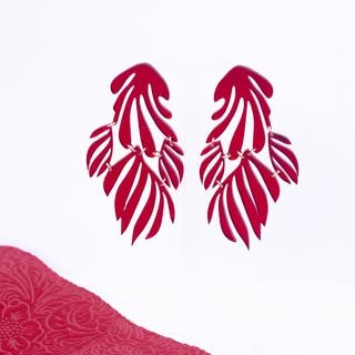 Cada pendiente mide 9,5 x 5 cm y está montado con perno de acero dorado, ideal para orejas sensibles. Son ultraligeros, resistentes y muy llamativos.