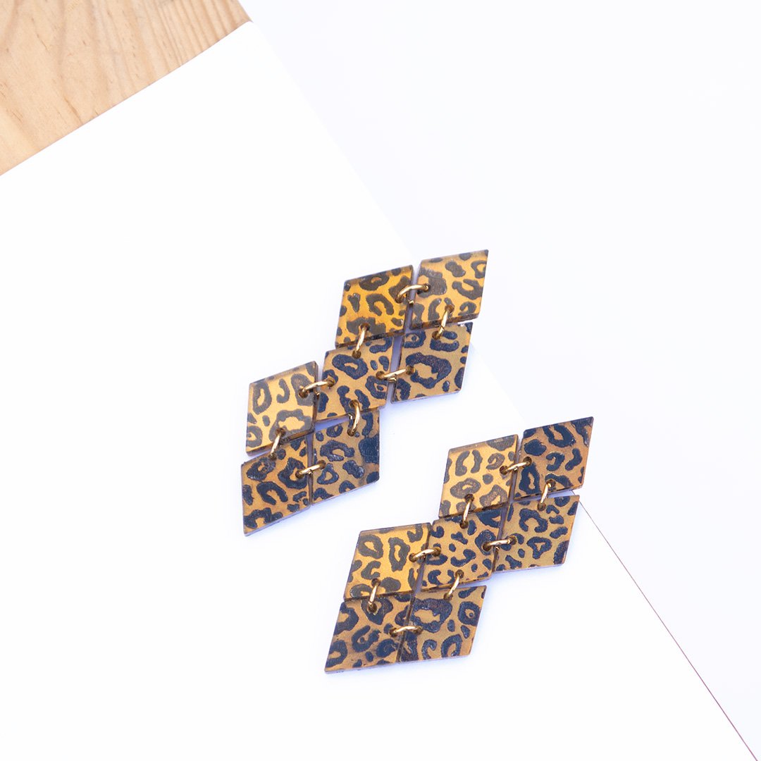 Estampado animal print pintado a mano sobre metacrilato. ¡Ligeros, salvajes y únicos!