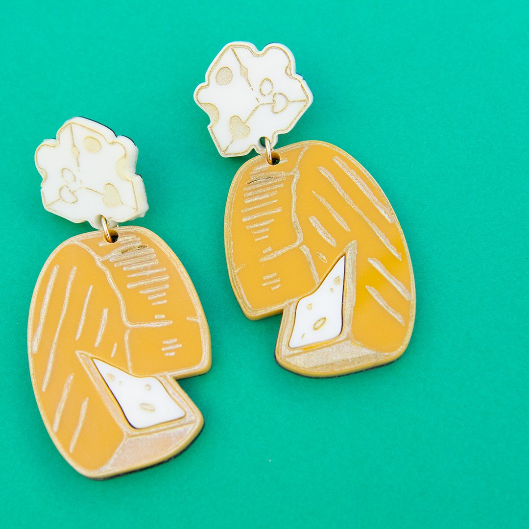 Pendientes XL con forma de queso, hechos en metacrilato pintado a mano. Ligeros, originales y con cierre de acero. 🧀💛